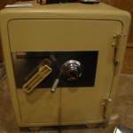 Method 2- Direct method is to wrap several turns of duct tape around the dial, set it at the drop, apply handle pressure to bind the dial then rock it back and forth vigorously by means of a large curved jaw vice grip on the dial (that’s the reason for the tape) until the cotter pin that holds the driver/spindle assembly shears. After that the driver unscrews, and tip safe back to allow wheels to fall off spindle, and turn key/handle, the wheels fall off the post into the door. Open the door and put the wheels back on the post, replace the cotter pin, eyeball the combo, and you’re done.